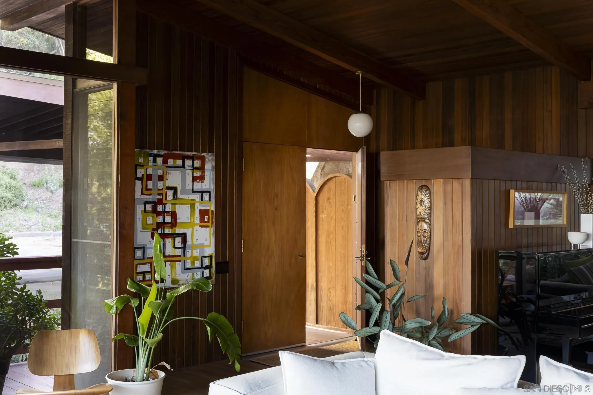 The Wexler House designed by Lloyd Ruocco is a classic example of California Mid-Century Modern architecture. With incredible mountain views from its idyllic and private Mount Helix setting, the home offers the full experience of indoor / outdoor living complete with sliding glass doors and a wrap-around deck. The current owners, principal's at Nyhoff Architecture, recently completed an immaculate full kitchen remodel with all new Bosch energy efficient appliances, and created a separate downstairs guest suite with adjacent office / studio. Additional updates include oak wood flooring, a new roof, recessed LED lighting, and enhanced landscaping throughout the 1.66 acre property. Everything was done to match the original aesthetics and intended design of the home (ie. new Walnut cabinets to match the originals with new white solid quartz to replicate original Plastic laminate countertops). The home is the perfect blend of vintage charm meeting the living standards of today, and is part of the Mills Act for substantial property tax savings.